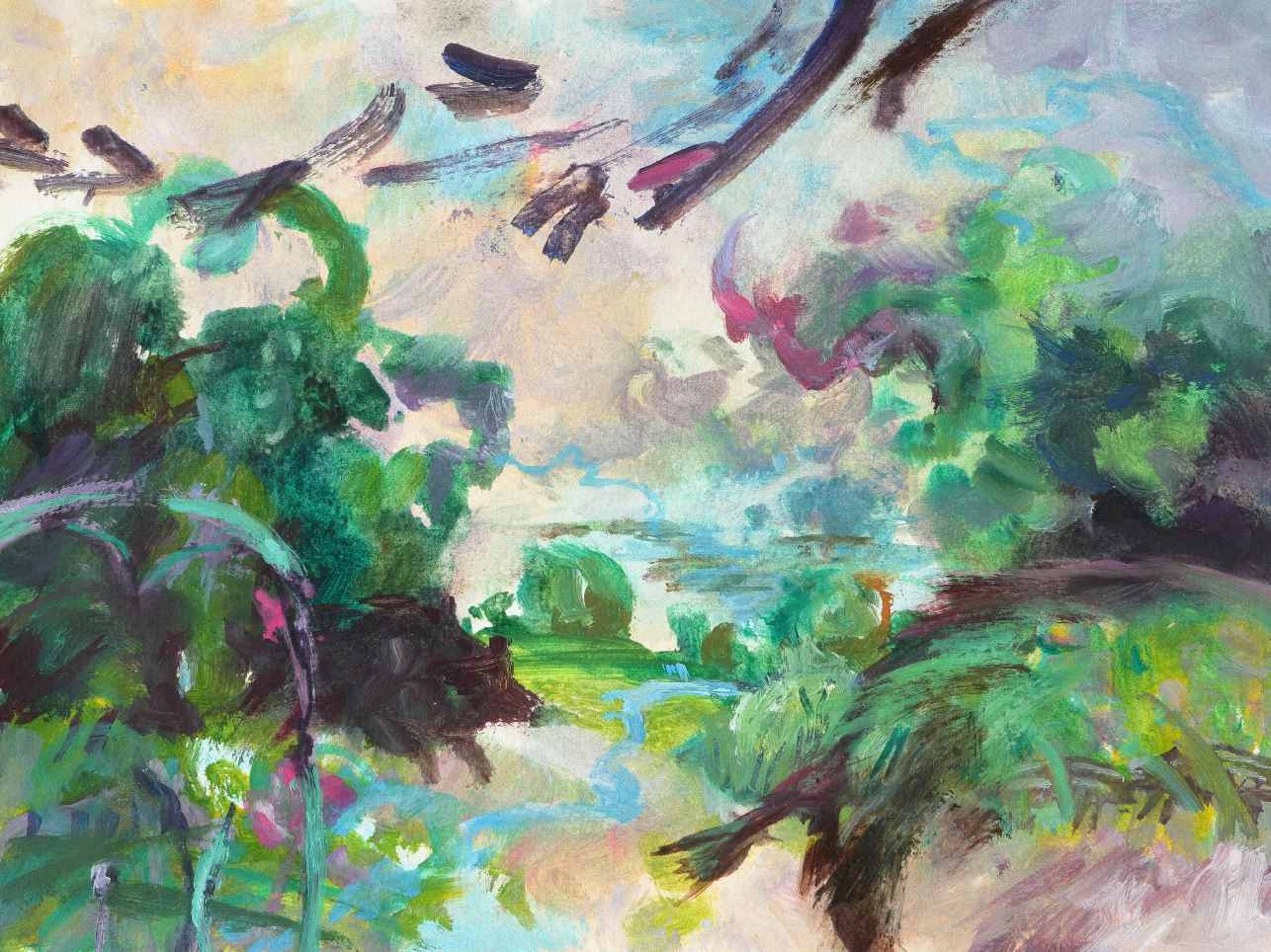 "Im Park (Schlachtensee)", Acryl auf Papier, 24 x 31,5 cm, 2024