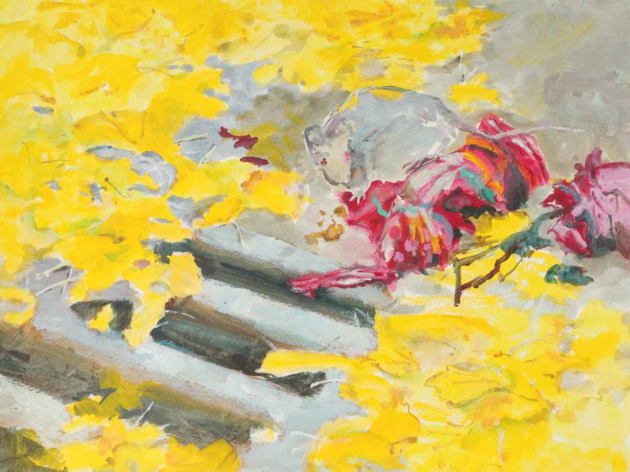 "Im Park (Schlachtensee)", Acryl auf Papier, 24 x 31,5 cm, 2024